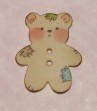 The teddy bear is painted in a neutral brown with tiny detailed stitching. The sew through button measures 1" x 5/8".